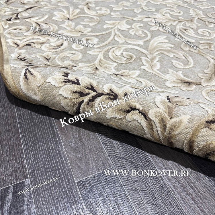 Ковер для гостиной из артшелка дизайн 61 Бежевый станет идеальным дополнением интерьера, оформленного в современном или классическом стиле. Мягкое, но прочное, ковровое изделие обеспечивает тепло- и шумоизоляцию, отличается длительным периодом эксплуатации, надежностью, экологичностью и высокой износостойкостью, является отличным барьером от повышенной влажности в комнате и утеплителем для холодного пола. Благодаря качеству материалов, ковер не деформируется, сохраняет первоначальный вид под тяжестью предметов мебели. За его поверхностью легко ухаживать.